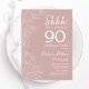 Invitación de cumpleaños número 90 de Rubor color rosa y blanco. El diseño femenino moderno presenta acentos botánicos y tipografía. Elegante tarjeta de invitación floral perfecta para una elegante celebración de cumpleaños sorpresa femenina. Invitaciones Zazzle impresas o una plantilla imprimible digital de descarga instantánea.