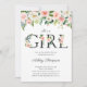 It's a Girl! Invite a la familia y a los amigos a su evento con esta elegante invitación a la ducha floral. Cuenta con melocotón y flores blancas de color verde. Personalice agregando nombres, fecha, hora, lugar y otros detalles. Esta ducha con flores para bebés es perfecta para duchas de primavera y jardín.