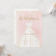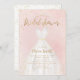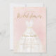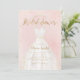 Las elegantes invitaciones a la ducha de novias cuentan con vestimenta boda blanca con guion brillante purpurina dorado de ducha de novia y detalles sobre un suave fondo rosa rubor.
