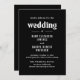 Invitación nupcial moderna con un diseño sencillo y mínimo, con tipografía atrevida en blanco sobre fondo negro. Los colores pueden cambiarse a cualquier color que elija en la herramienta de edición de diseño. Esta invitación contemporánea a la boda es ideal para un boda temático de gótico o halloween.