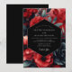 Embrace a dramatic and romantic atmosphere with this moody floral design. A stunning arrangement of lush, painterly blossoms in deep crimson and ruby red hues pops against dark slate blue foliage. This elegant and artistic botanical pattern sets a sophisticated tone for your nuptials.