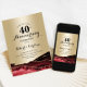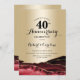 Invitación de aniversario 40 de bodas oro y rubí rojo. Diseño formal elegante con fondo de mármol de ágata, oro con brillo falso y tipografía con letra de script. Tarjeta de invitación de moda perfecta para una celebración de aniversario de bodas con estilo. Impresiones de invitaciones de Zazzle o plantilla digital imprimible para descargar al instante.