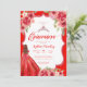 Este lindo listado es para una invitación a la celebración de Quinceanera roja y blanca. Caracteriza el tipo de letra del guión y una tiara. Diseño elegante con un falso rojo purpurina. Perfecto para una elegante celebración de glam.