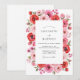 This design features a vibrant array of watercolor roses and peonies in shades of pink and ruby red. The lush botanical arrangement creates a romantic and energetic atmosphere, perfect for a sunny seasonal event. Deep green foliage provides a natural contrast to the warm, blossoming petals, resulting in a sophisticated aesthetic.