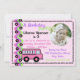Invitación Ruedas de bus de escuela rosa con foto