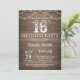 Invitación rústica de 16 años con antecedentes de madera rústica. Luces de cadena. Retro Vintage de campo.Cumpleaños de niños. Cumpleaños de niño o Chica.