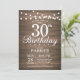 Invitación rústica de cumpleaños 30 con fondo de madera de String Lights. 16.º 18.º 21.30.º 40.º 50.60.70.90.100, Cualquier edad. Para una mayor personalización, haga clic en el botón "Personalizar" y utilice nuestra herramienta de diseño para modificar esta plantilla.