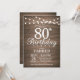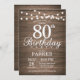 Invitación Rustic 80th Birthday Invitation String Lights Wood