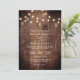 Invitación Rustic Barn Wood String Lights QR Code Wedding