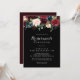Esta rústica invitación a las damas de honor negras a la ducha de mediodía es perfecta para una clásica ducha de boda. El diseño se caracteriza por un radiante de color burdeos, rojo, marino, azul y rubor y unas bonitas flores pintadas a mano con un fondo negro que inspiran la belleza natural.