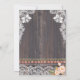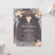 Esta bonita invitación se caracteriza por un oscuro fondo rústico de madera, un cráneo de cabeza de toro florido y bonitas flores acuáticas con encajes y cordones. Perfecto para una invitación a la boda, ducha de novia, ducha de bebé, celebración de cumpleaños o barbacoa.