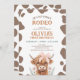 Invitación Rustic Brown Highland Cow First Rodeo 1st Birthday