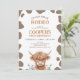 Invitación Rustic Brown Highland Cow First Rodeo Birthday