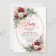 Celebrate a special upcoming arrival with this boho baby shower invitation featuring rich burgundy, deep red, marsala, and maroon watercolor peonies, accented with soft eucalyptus greenery and elegant gold details. This warm, romantic color palette creates a stylish and inviting look, perfect for bohemian, rustic, or modern baby shower themes.