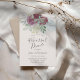 Discover an exquisite template for your rehearsal dinner invitation, showcasing elegant roses and peonies in rich burgundy and ivory hues, complemented by intricate foliage in soft dusty blue and sage green. This invitation features original watercolour artwork, offering a sophisticated and personalised touch. Perfect for couples seeking a refined and memorable invitation design.