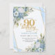 Invitación Rustic Dusty Blue 90th Birthday Floral Script
