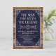 ¡Es El Hombre El Mito La LEYENDA! Su vida ha sido una aventura asombrosa y es momento de celebrar su legado y a él. Este rústico papel azul marino con respaldos de madera con textura, de tipo blanco y esquinas de enrollado blanco 90º cumpleaños, es perfecto para invitar a amigos y familiares a que se unan para honrar y celebrar este increíble cumpleaños. Para ver sus invitaciones únicas, haga clic en "Personalizar esta plantilla" y escriba su información. ¡Es muy fácil!