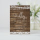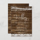 Rustic Farmhouse String Lights Lace Wedding Invitaciones sobre el fondo de la madera - incluye hermosa y elegante tipografía de escritura con moderna Country Farm House Sparkle para la celebración especial del Día de la Boda.