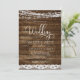 Rustic Farmhouse String Lights Lace Wedding Invitaciones sobre el fondo de la madera - incluye hermosa y elegante tipografía de escritura con moderna Country Farm House Sparkle para la celebración especial del Día de la Boda.