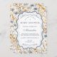 Celebrate the mom-to-be with this elegant wildflower-inspired design featuring soft blue and golden florals. The timeless botanical frame and minimalist layout create a warm, rustic feel — perfect for a garden, countryside, or spring baby shower.