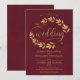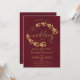 Invitación Rustic Golden Leaves Elegant Burgundy Wedding