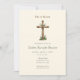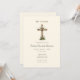 Rustic, elegant He is Risen Easter service Invitation featuring a wooden cross surrounded with easter Lillies and flowers