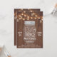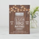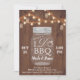 Esta rústica invitación de I Do BBQ es perfecta para una barbacoa en el patio trasero. Tiene luces de cuerda, jarras de albañil y madera. Es ideal para una ducha informal.