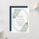 Rustic floral Quinceañera : Light blue and white floral with greenery foliage. Features navy blue and modern script typography