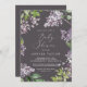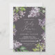Esta rústica ducha de leche gris lila es perfecta para una ducha de bebé de primavera o verano. El romántico y elegante diseño floral presenta flores silvestres de lila morada con acuarelas y un ambiente rústico y acogedor.