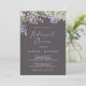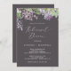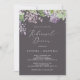 Esta rústica invitación a realizar un ensayo de la cena en gris lila es perfecta para un ensayo de primavera o verano boda. El romántico y elegante diseño floral presenta flores silvestres de lila morada con acuarelas y un ambiente rústico y acogedor.
