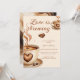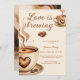"¡El amor se está gestando!" Celebra la futura novia con un acogedor Brunch Rústico Rústico con ducha de novia con temas de café. Esta encantadora invitación marca la pauta para una reunión cálida y acogedora, perfecta para una fiesta nupcial con amor al café. El diseño combina la elegancia rústica con el amor por la cafeína, con tonos tierra, delicados acentos florales y motivos vintage del café. Ya sea un brunch con ducha de novia, un fiesta de degustación de café o una acogedora celebración matutina, esta invitación hará que los invitados se entusiasmen con levantar sus tazas en honor a la novia.