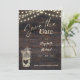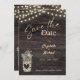 Fije el tono para la celebración de su país con estos objetos rústicos de papelería boda con un cálido fondo de madera, brillantes luces de cuerda y encantadoras jarras de albañil. Perfecto para bodas de granero, celebraciones al aire libre o acogedoras ceremonias nocturnas, este diseño rústico crea un ambiente acogedor y romántico. Personalizar con tus nombres, detalles del boda e información del evento para diseñar la papelería perfecta que refleja tu estilo rústico.