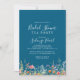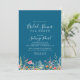This rustic meadow botanical bridal shower tea party invitation is perfect for a garden wedding shower. The design features seamless hand-painted yellow, navy, blue, yellow, pink, and blush wildflowers with botanical leaves in a navy background.