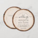 Our custom round rustic yet modern wood grain barn Wedding Invitation combines a natural tree slice with elegant script typography to create a unique wood look invitation with a romantic feel. The text on the invitation is written in an elegant script font, exuding sophistication and grace. The script font adds a touch of formality and elegance to the overall design, and the QR code on the back makes it very convenient!