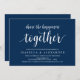 Hermoso diseño rústico moderno, en Navy Blue Script, tarjeta de invitación de la fiesta de compromiso Boda (Comparte la felicidad juntos). La tarjeta de invitación perfecta para la celebración de tu fiesta de compromiso. Añade tus detalles en letras / fuentes coincidentes.Teesha Derrick