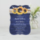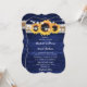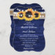 Invitación Rustic Navy Blue Sunflower Wood Wedding