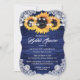 Invitación Rustic Navy Blue Wood Lace Sunflower Bridal Shower