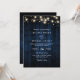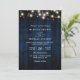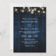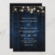 Invitación Rustic Navy Blue Wood String Light QR Code Wedding