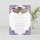 Invitación Rustic Purple Floral Lace Burlap Hearts Wedding