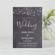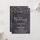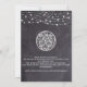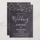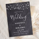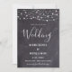 Invite a amigos y familiares a su boda con estas elegantes y rústicas tarjetas de invitación a la boda. Estas pizarra únicas, todas en una sola invitación a la boda, presentan elegantes luces de cuerda blancas en el diseño de pizarra de pizarra gris con código qr del sitio web boda para RSVP fácil. Personalice estas invitaciones de boda en pizarra con nombres, fecha de boda y ubicación. Vea nuestra colección de bodas para invitaciones nupciales únicas, álbumes de fotos de bodas, libros de invitados, regalos de fiestas y más! DERECHOS RESERVADOS © 2020 Judy Burrows, Black Dog Art - Todos los derechos reservados. Rústica Slate String Lights County QR Code Invitación a la boda