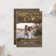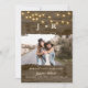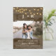Establezca el tono de su gran día con esta foto rústica ahorre la tarjeta de fecha con su monograma, luces de cuerda brillantes y una textura de madera de granero con un marco fotográfico al estilo de una pincelada. Perfecto para bodas de campo, casa de campo o al aire libre, esta tarjeta personalizada resalta su foto favorita de compromiso mientras la mantiene maravillosamente incómoda y romántica.