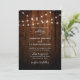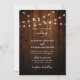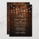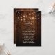 En esta rústica invitación a la boda se respira un ambiente acogedor y romántico, con un fondo cálido y de textura de madera y luces de cuerda suavemente brillantes. La elegante mezcla de escritura manuscrita y sans-serif añade un toque de encanto y sofisticación, lo que lo hace perfecto para bodas de granero, campo o exterior. El diseño de grano de madera oscura realza el contraste del texto blanco nítido, asegurando la legibilidad mientras mantiene una estética de moda rústica. Ideal para parejas con un presupuesto que planea una celebración inspirada en otoño, granja o bosques, esta invitación marca el tono para un día de boda íntimo y elegante.