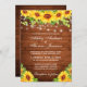 Rústica cuerda de madera ilumina acuarela Floral de girasol y verde Invitación a la boda