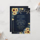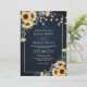 Invitación Rustic Sunflower Navy Blue Wood QR Code Wedding