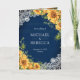 Invitación Rustic Sunflowers Navy Blue Wood QR Code Wedding