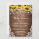 Invitación Rustic Sunflowers String Lights Lace Baby Shower