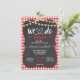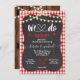 Rustic country themed "We do" bbq barbecue rehearsal dinner or Engagement invitations. Features a red and white gingham checked table cloth, chalkboard, string of lights and the back is a dark barn wood background. To make more changes go to Personalize this template. On the bottom you’ll see “Want to customize this design even further? Click on the EDIT using Design tool. It will take some learning but you can change some of the fonts & some colors, move things around or delete what you need.