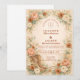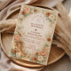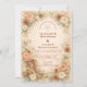 A romantic blush and peach floral design framed by a soft watercolor arch of roses, garden blooms, and airy pampas accents. Warm neutrals and muted sage greenery create an elegant, timeless aesthetic with a subtle western touch from the hat and rope detail. The composition feels refined yet natural — perfect for a boho western celebration, ranch wedding, or romantic garden ceremony. Fully customizable with your names and event details.