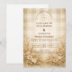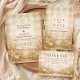 A romantic vintage-inspired design featuring soft wildflowers, golden wheat stems, and glowing lantern accents framing a warm parchment background. Delicate botanical details and earthy neutral tones create a timeless countryside atmosphere with a refined rustic touch. The symmetrical garden framing adds elegance while keeping the overall look soft and inviting. Perfect for an outdoor ceremony, vineyard celebration, or romantic garden setting with classic charm.