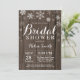Invitación Rústica A La Ducha Bridal De Invierno. Copo de nieve blanco. Invitación a la ducha de novia de vacaciones para navidades. Fondo De Madera Rústica. Barn Retro de la Vintage del País. Para una mayor personalización, haga clic en el botón "Personalizar" y utilice nuestra herramienta de diseño para modificar esta plantilla.